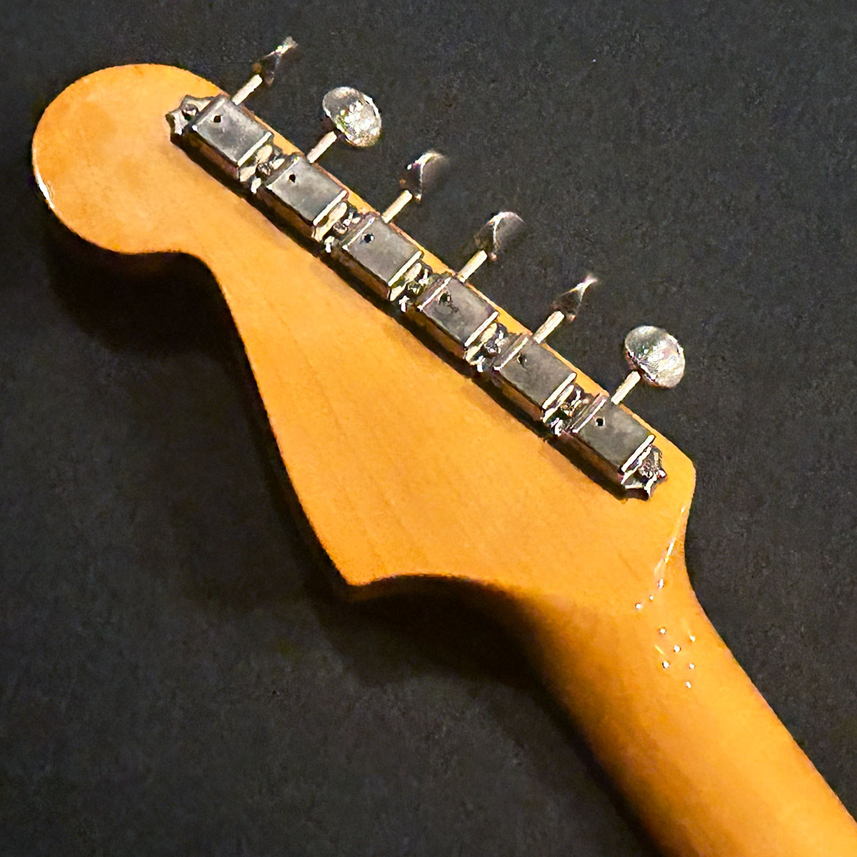 その他、トレモロユニットはUSA純正品に交換され、ピックアップセレクター、ノブやピックアップカバーなども交換されています。